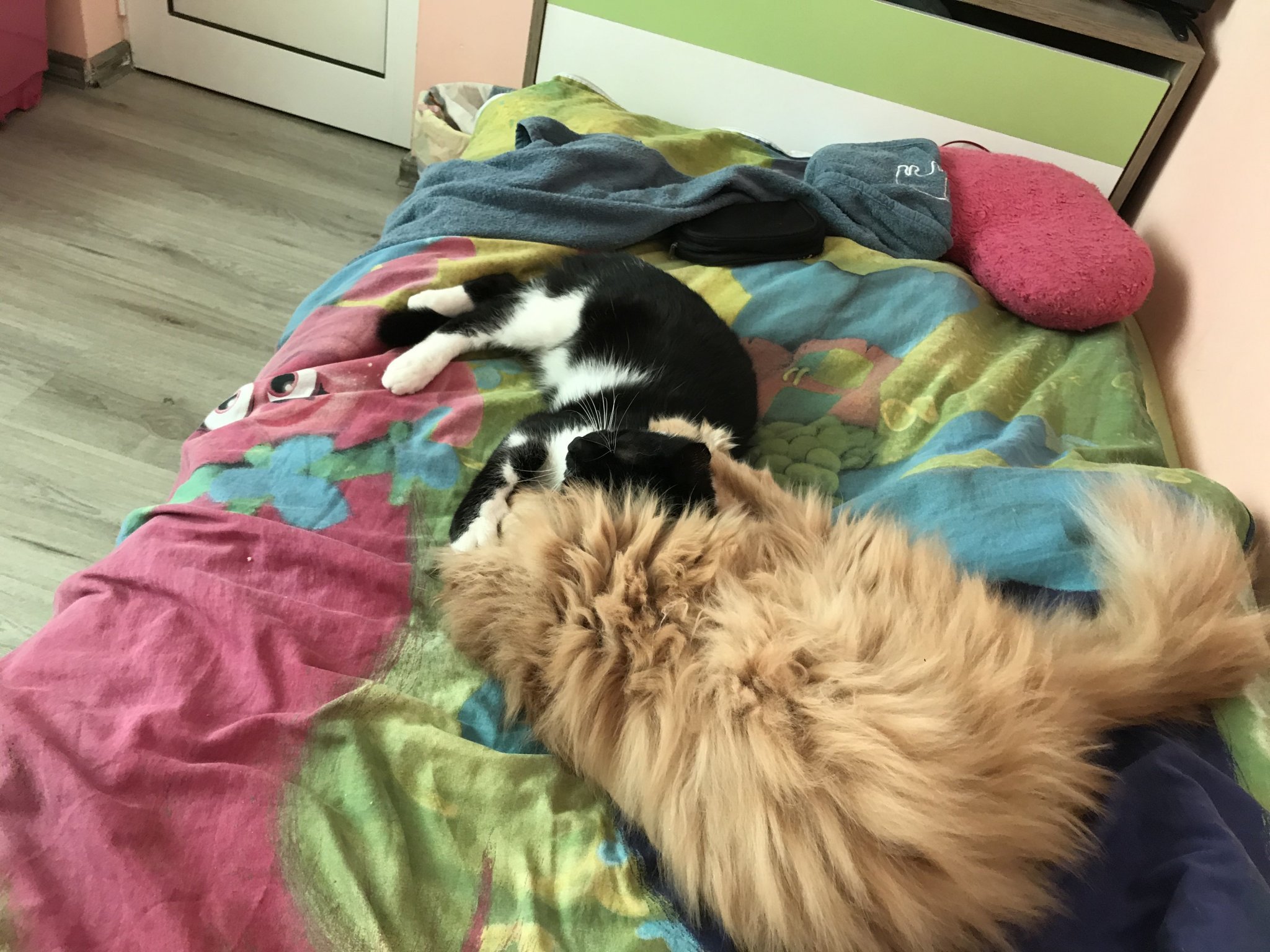 Близаха се, биха се, накрая си се гушнаха и заспаха 😂❤❤