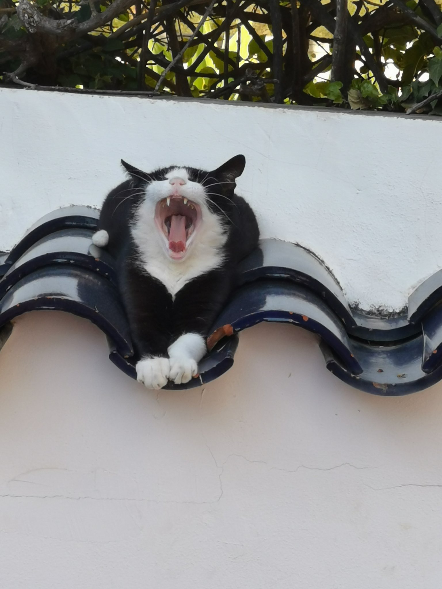 Пускам данък за Васко, и прозяващата се неговата улична приятелка, която идва да спи на керемидите в двора, защото акумулират слънчева топлина. Хитруша е. И на него се подмазва, а видях какви шамари бие на един уличен котарак, който се опитваше да пие от бульона, който им оставих до кофите. Тя беше пила вече, но реши да не пуска други.