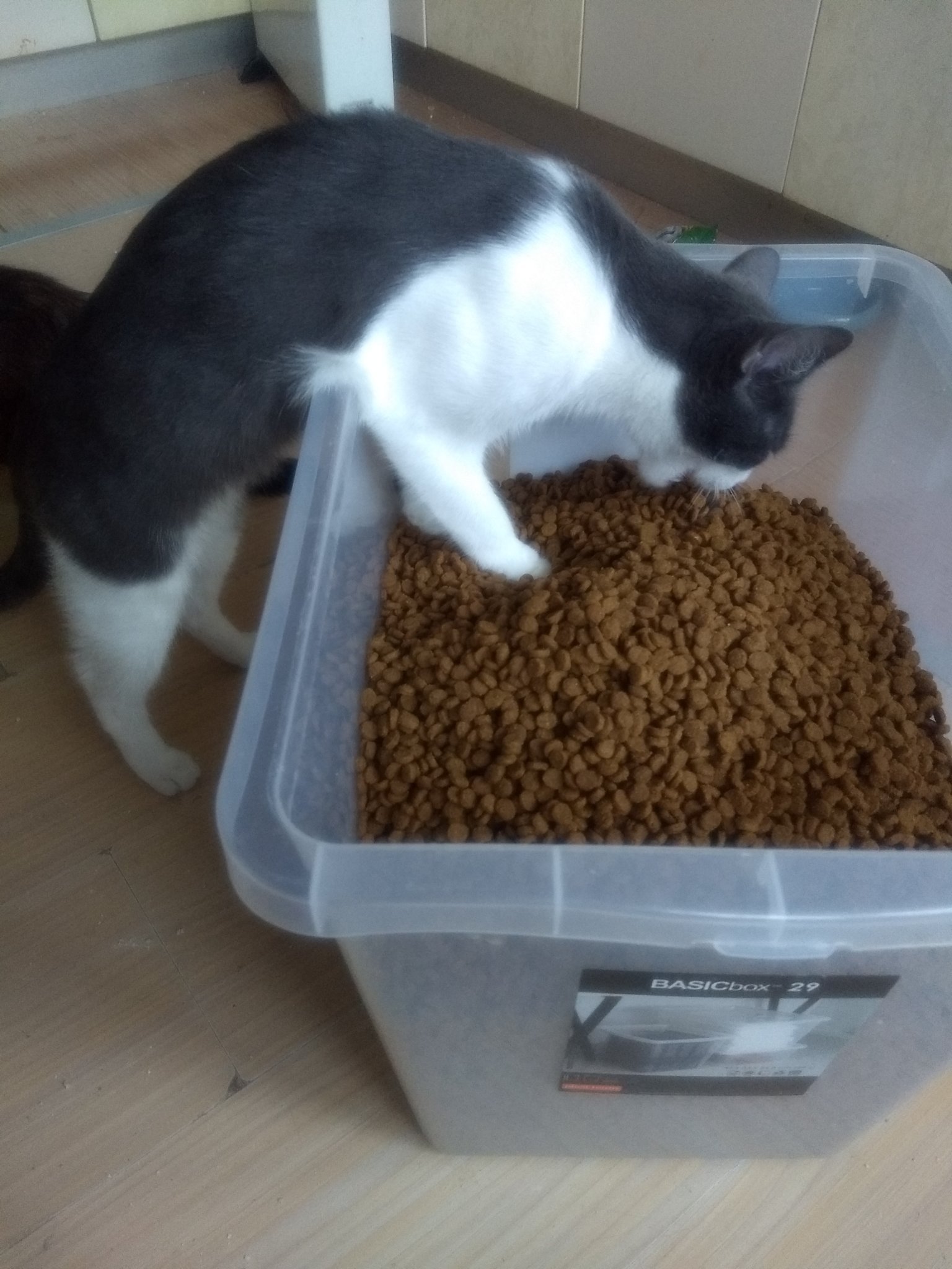 Сутринта за малко да остана без кафе, сега щеше да ми разсипе яденето. Тя иска да го зарие, да си имам за после. И с нейното ядене е същото - може да има ама ти трябва да сипеш една две гранули и да го зарие или обърне.