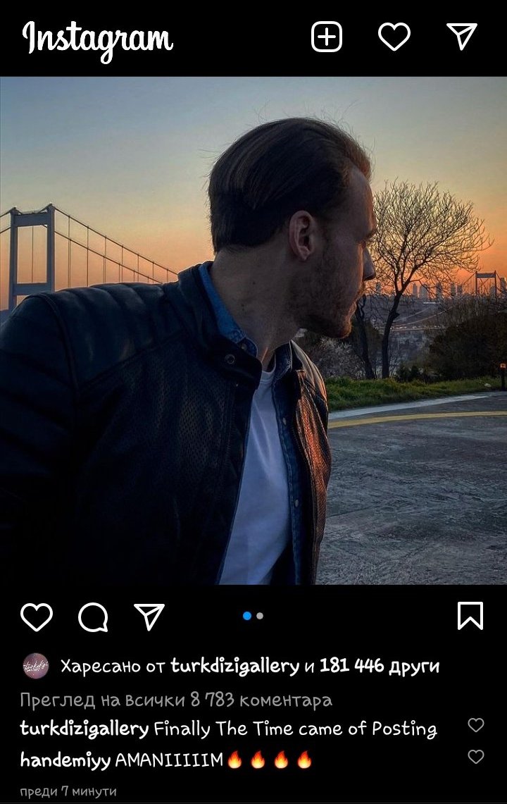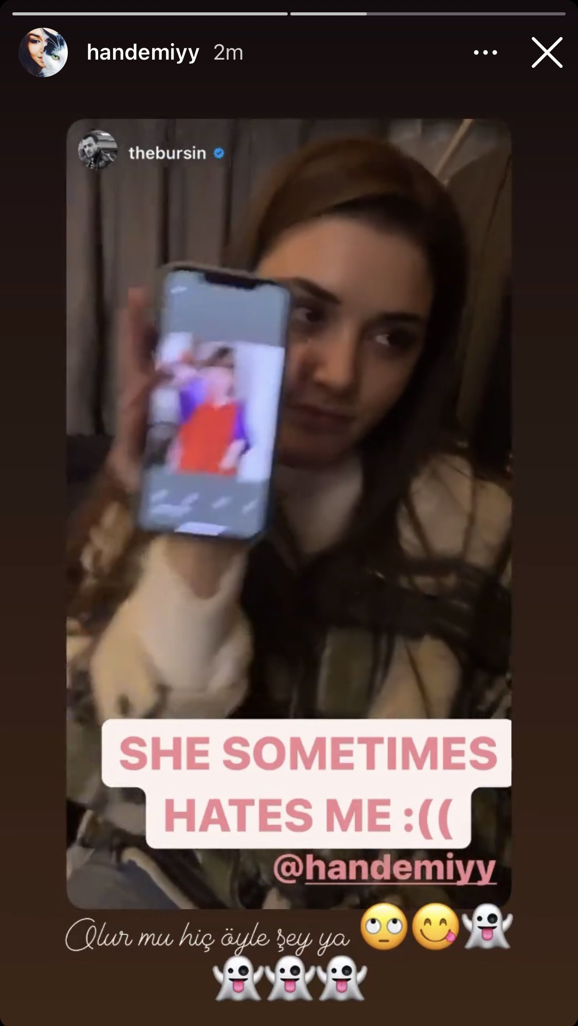 И стори има. Керем го сподели, Ханде го ришерна. Керем е написал: “Тя понякога ме мрази.” Ханде е отговорила нещо на турски, което не разбирам. Но Али и Алекс ще кажат каква е закачката. Wink