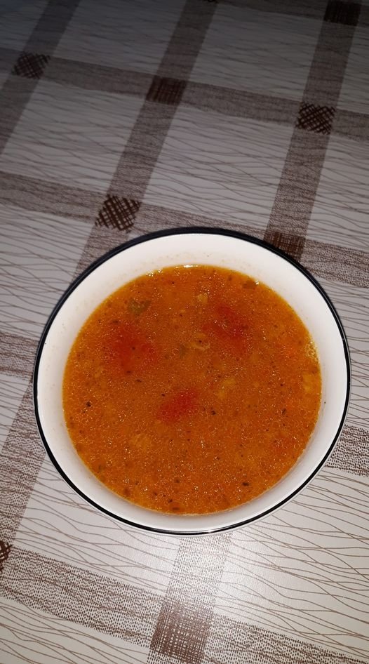 Езогелин чорбасъ...побългарена с рендосан морков и вместо доматена салца домашно консервирани белени домати на парченца за готвене...Да ти е сладко и бързо да минава....