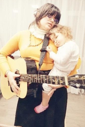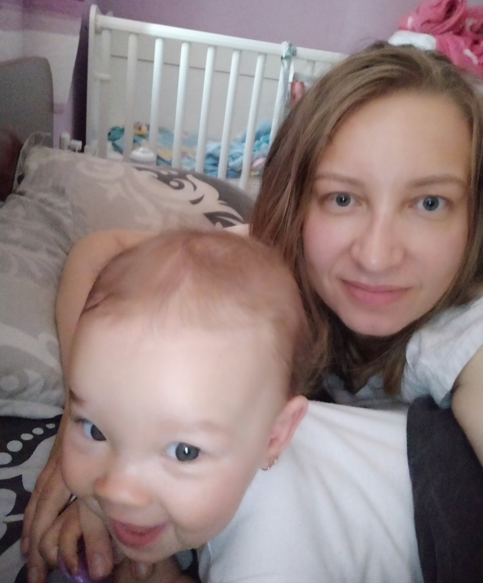 Аз и малкото ми гардженце,току що станали от сън.