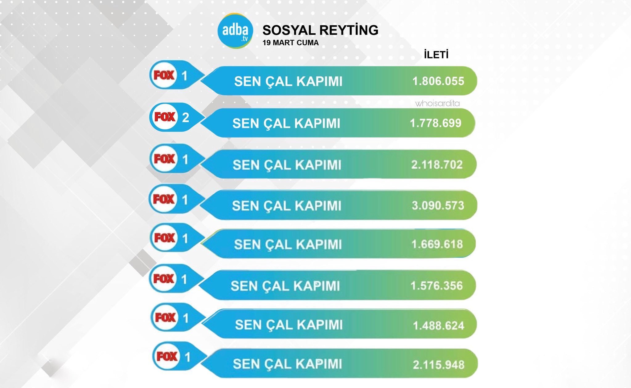 Социалният рейтинг от последните седмици. Не е публикуван официално от Adba, а някой с фотошоп е събрал в едно резултатите.