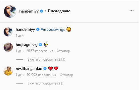 Тази красива снимка на Ханде е харесана от Бурра Гюлсой и от Неслихан Яалдан