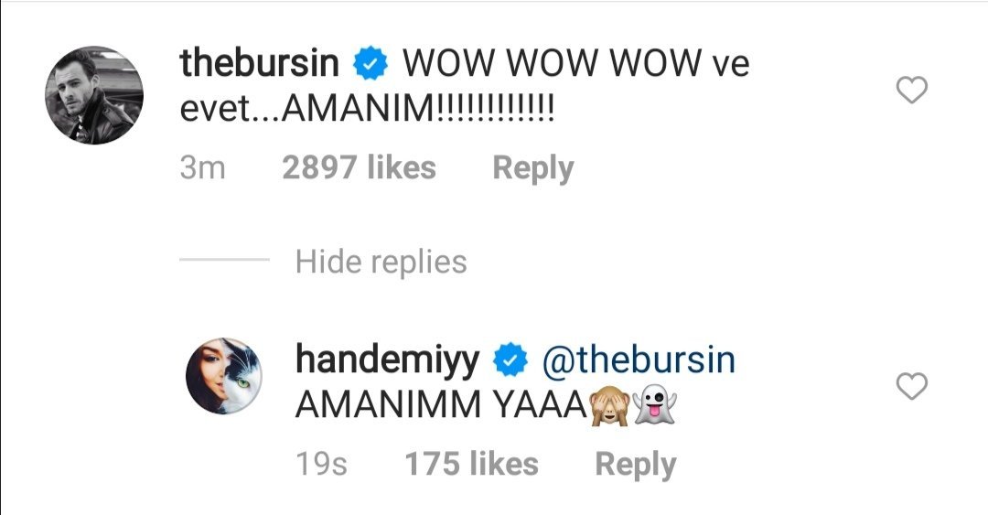 На новата снимка на Ханде в инстаграм. Разменят си пак тяхната си думичка.Heart Eyes