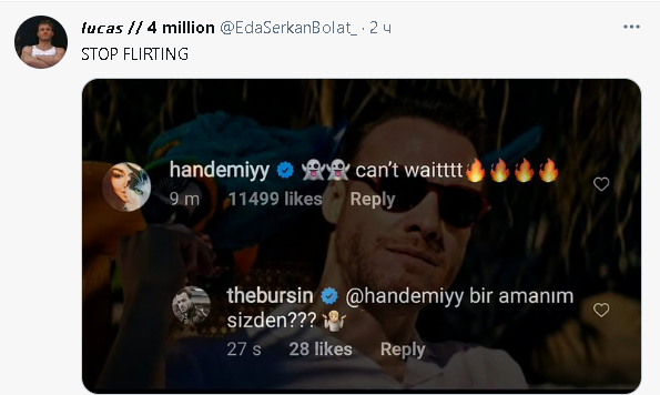 Представям си ги Ханде и Керем седнали в караваната между снимките. Следят ТТ и ИГ , търкат телефоните и се смеят " виж това", ''  А това прочети ли?" , " Ами хайде да зарадваме феновете стоящи зад всичко това, Керем. Кажи паролата" . Керем с усмивка " АМАНИИМ... и Хандеми да ми върнеш вече шапката, че Хектор няма на какво да спи. Само се вре в суитчъра ти, който забрави  преди време. Готова?"...