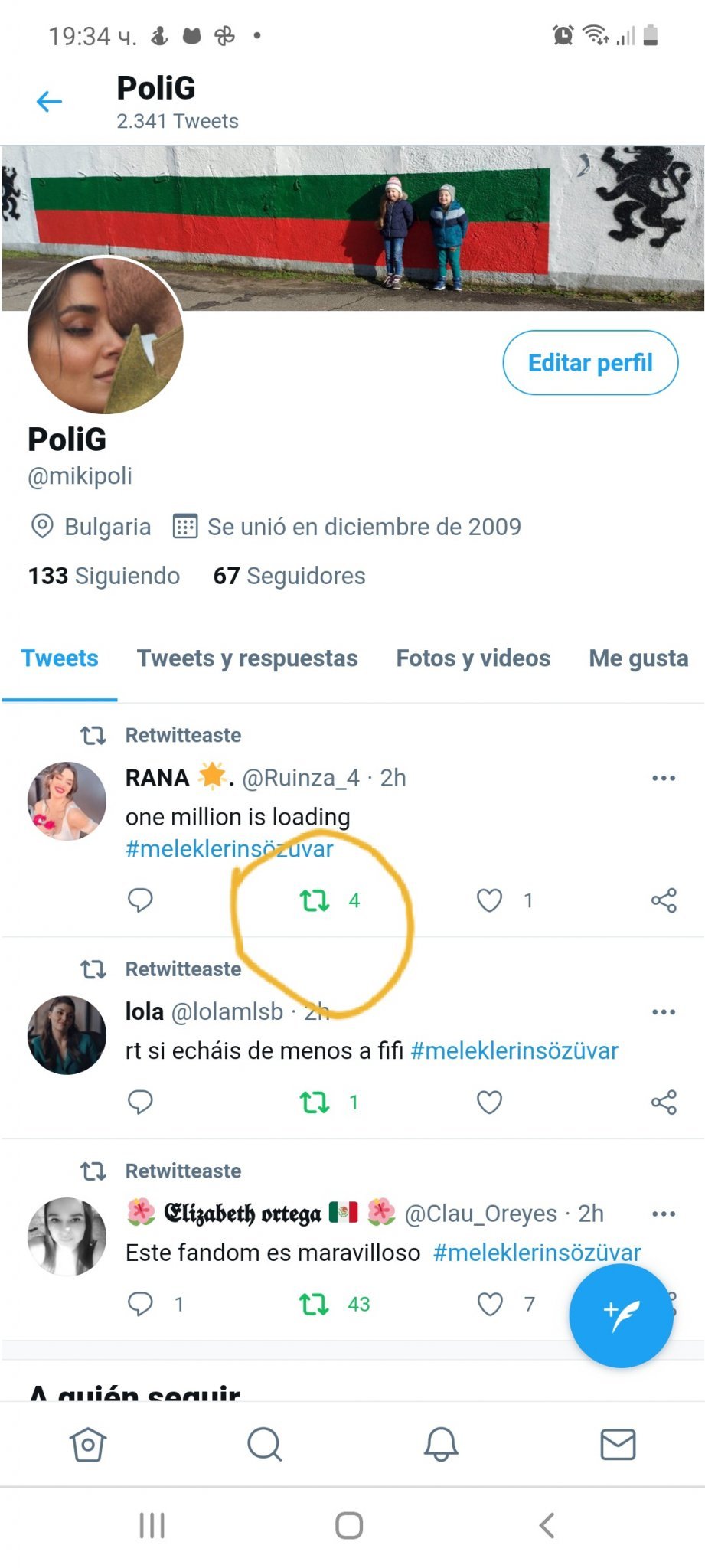 Миличка, последвай ме в туитър , напиши в търсачката @mikipoli и ще излезе, после виж всички туитове, които съм направила/споделила и направо поред почваш да ретуитваш , натискайки този бутон на всяка публикация