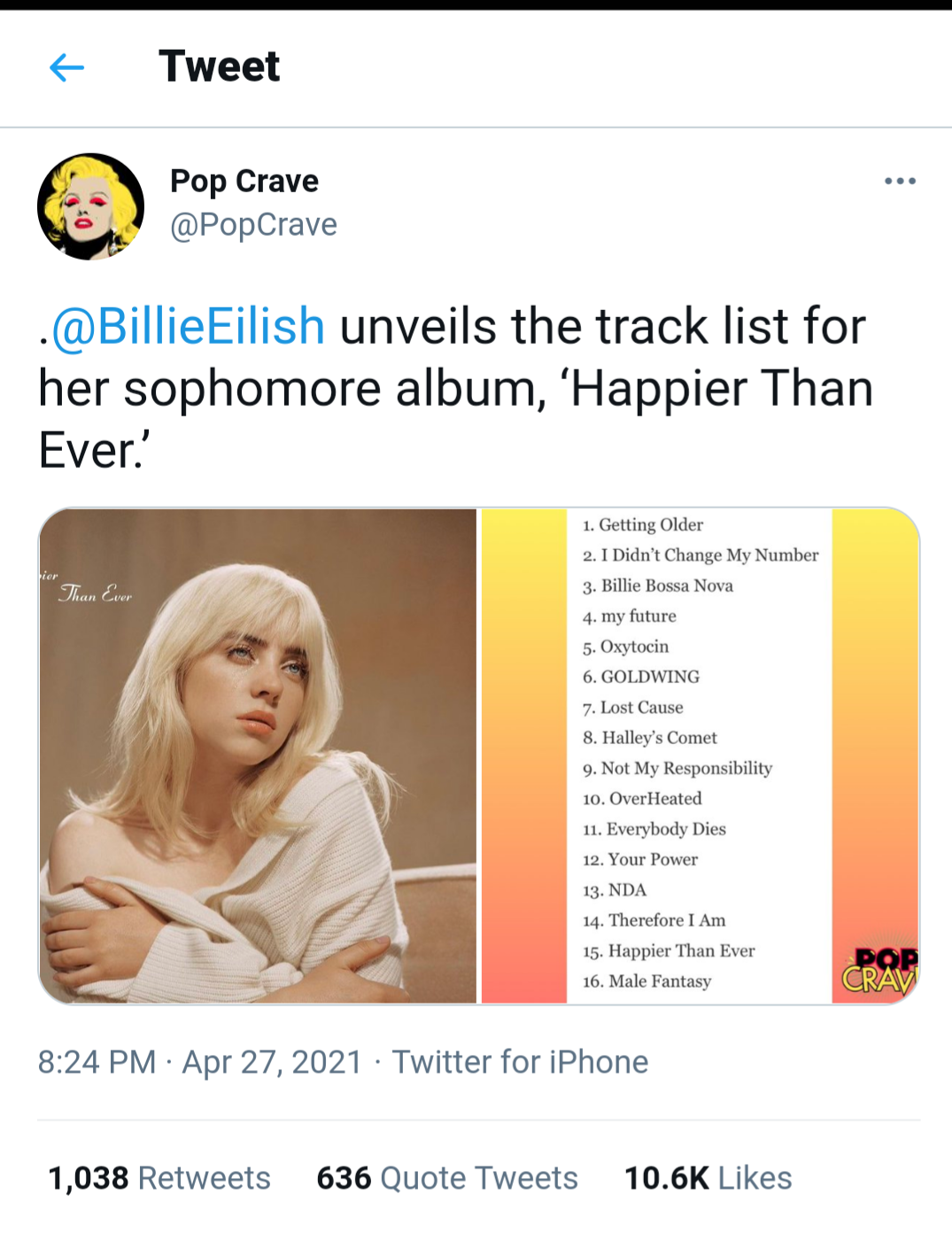 Не е ли забавно съвпадение как се казва песен номер 1 от бъдещия албум на Били Айлиш? Laughing