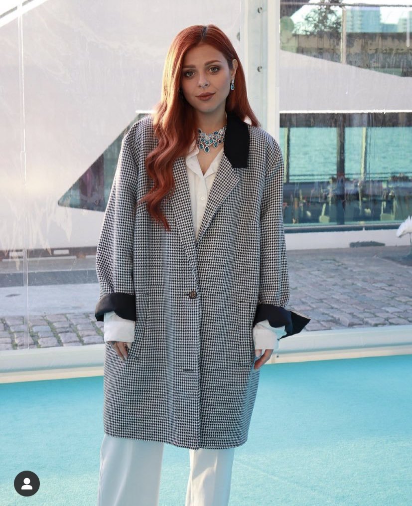 Виктория с грозно овър сайз сако. Ужасна мода е това.