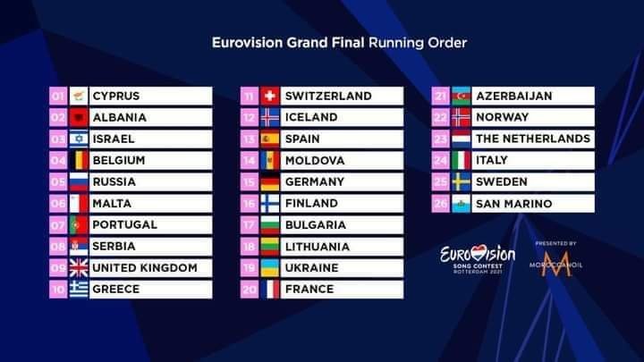 Албания, Сърбия, Португалия, Исландия, Швейцария и Гърция ще пеят в първата половина на финала.