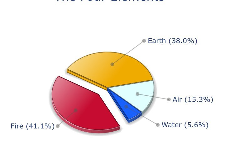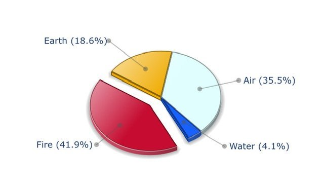 Твоите 56-процентови огньове са нищо с моята земя (62,5%).😁😅 ...И все пак доминантният ми елемент е огън. И да, лесно се паля. Водата ми е 5,3 %.