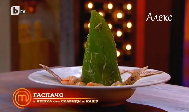 Това с чушката беше умопомрачително от Александър,но как да се представи добре,като му казаха, че трябва да готви с горелката.Коментирахме с приятелката ми,че е възможно да направи десерт без печене или да вземе месо,което му е нужно много малко термична обработка,но шефовете му казват, че бяга от задачата.Това си е пълна гавра с човек да го поставят в такава ситуация.Единственото по тъпо решение беше миналият сезон Красимир си беше направил прекрасна майонеза и го смениха с Елени и е хвалеха нея,че направила перфектната майонеза,а тя беше от Краси и него го пратиха на елиминация,защото тази на Елени беше трагедия.