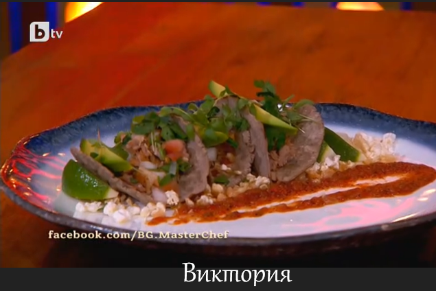 Такосчета ми се ядат от снощи, а пък никога не съм яла. Значи канадецът си е свършил работата с неговия мастърклас. Съжалявам, че Виктория допусна грешка и заслужено загуби от Нела, но нейната чиния повече ми хареса. Тя ми става все по-симпатична, не само заради усилията ѝ да оцелее, а и заради поведението ѝ като цяло. Ще вземе да ми стане фаворит за финала, ако стане такова чудо въобще.Laughing