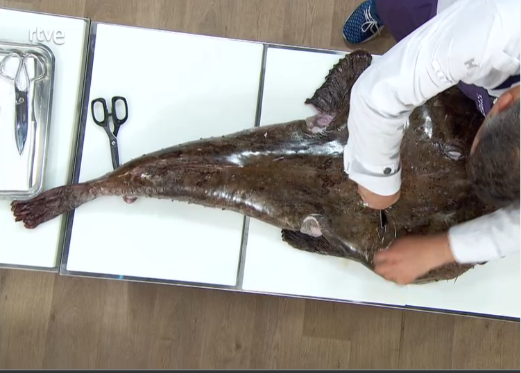 Бяха поканили известен шеф (Ángel León) с 3 звезди Мишлен. Предоставиха му морски дявол, тежащ над 30 кг, за да го разфасова.