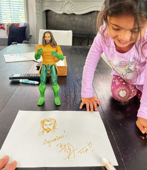 Вчера дъщерята на Скалата (Тиа, малката) е имала рожден ден. На закуска Дуейн й рисува  Аквамен, когото тя много харесва...
