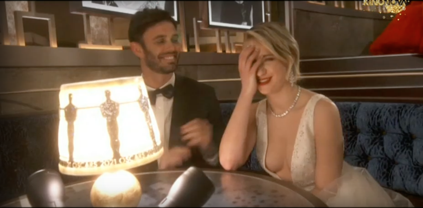 Гледах отново обявяването за най-добра поддържаща женска роля и това, което всъщност казва Брад Пит, е 'For Maria Bakalova is all about Marilyn Monroe. She wrote Merylin's quote - I'm gonna be a great movie star someday. Maria, welcome!' (За Мария Бакалова всичко е свързано с Мерилин Монро. Написала е цитатът на Мерилин - един ден ще бъда голяма звезда. Мария, добре дошла!) Не я сравнява с Мерилин по никакъв начин, просто споменава онова, което самата Мария е казвала в интервюта, че е писала цитата на Мерилин като дете по чиновете в училище. Иначе визията й като цяло ми хареса, но винаги е с една и съща прическа.