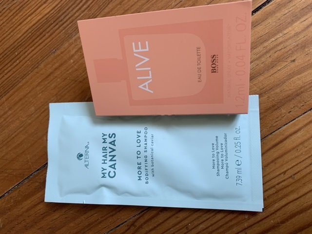Получих си поръчката от  parfumdreams, заявена преди 10 дни. На стойност малко над 100 Е, с нишов парфюм. Мострите са шампоанче и пробичка на Alive Boss. Кашончето- смачкано леко. Само кодовете за намаления ги крепят.