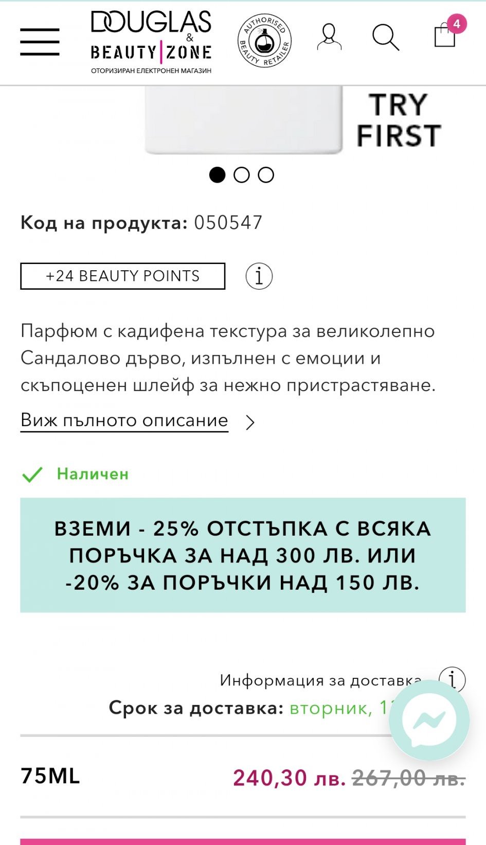 Цената в Дъглас в момента, като има и 25 % за поръчки над 300 лв знаете....