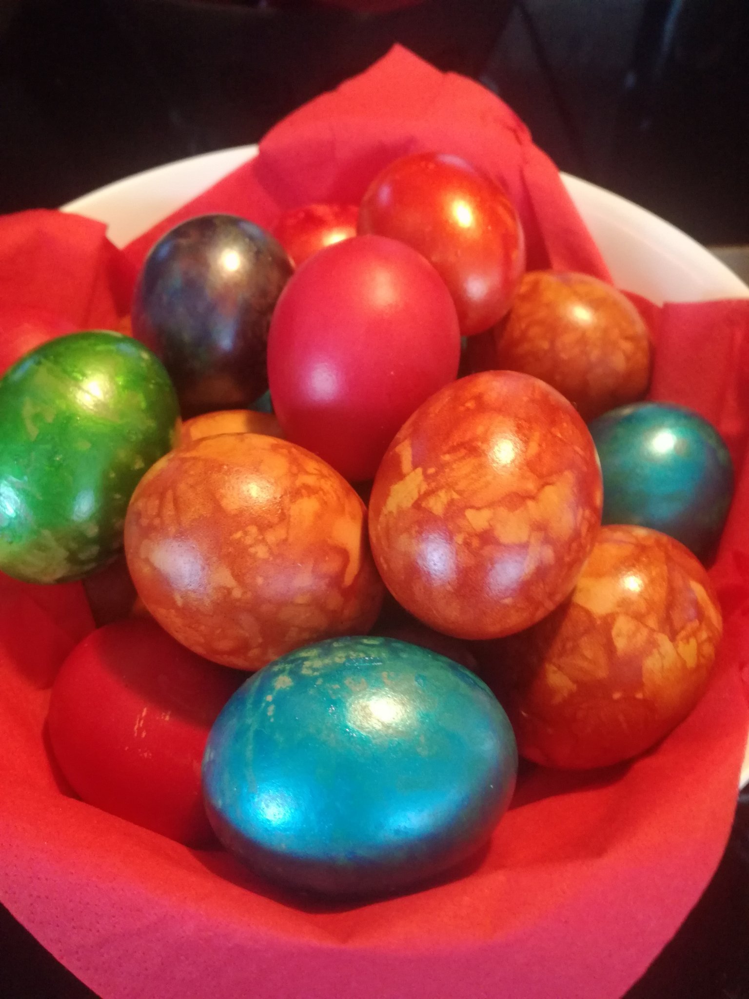 Боядисах половината яйца. Другата половина надвечер като си дойде Буболечето от градина. Днес имат някакво тържество и тя ще е лаленце. Приготвили са им костюми, научили са песнички и стихчета. Учителките ще снимат и ще пращат снимки и клипчета на родителите, та чакаме да видим какво са правили. Жал ми е, че заради мерките, и дечицата, и родителите са ощетени от такива хубави моменти и не могат да ги споделят истински.