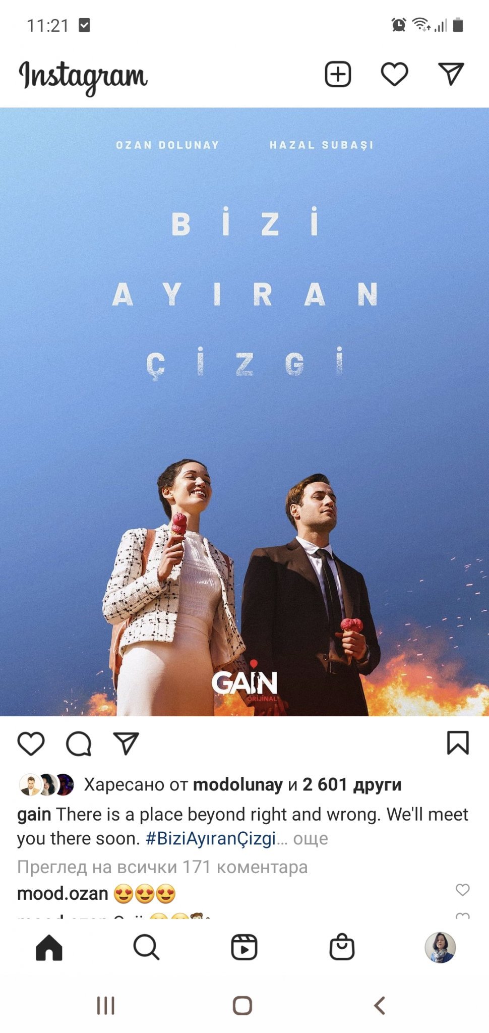 на Озан всичко което иска да ни каже и болката в гласа.Май след озвучението ще изледам дизито пак на турски.Убиват ми мерака да гледам с некадърен и скалъпен превод и озвучение като на блеещи кози.