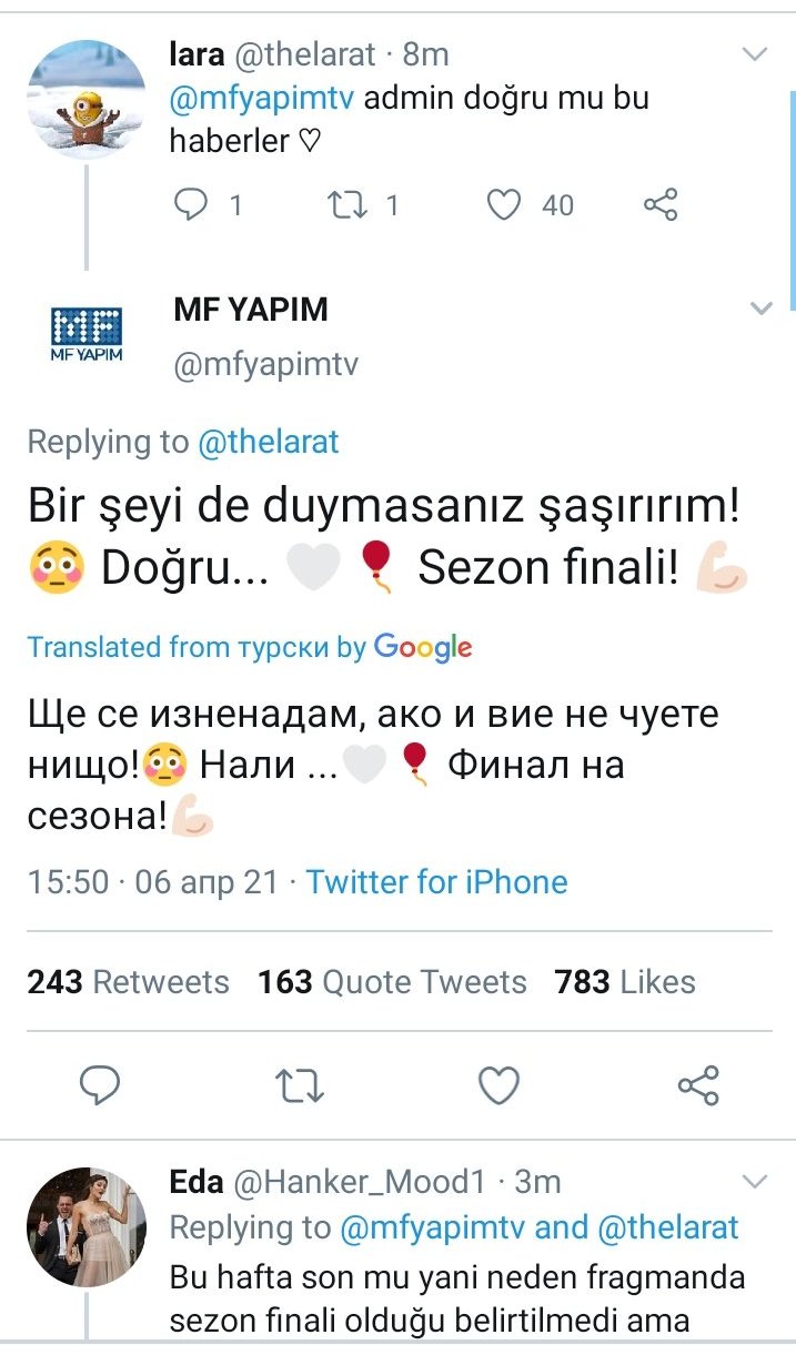 MF Yapim са писали, че съобщенията ще започнат от тази вечер. ???