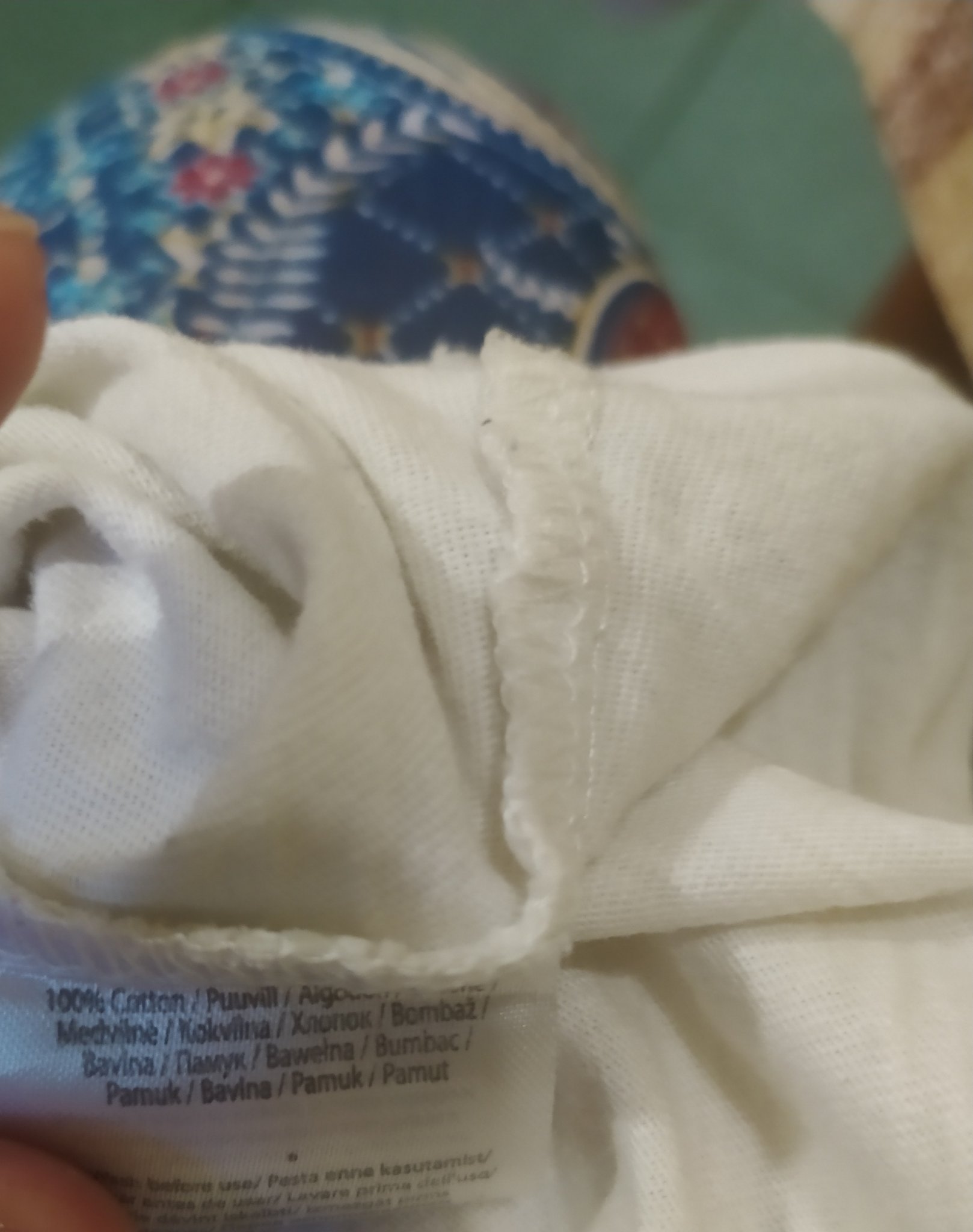 Няма да коментирам това как може да облечеш нещо, без да го изпереш, еле пък бебето си да нагиздиш с неизпрана дреха /казвам го аз, която никога не съм гладила бебешкото пране, не съм го отделяла от нашето пране и го пера с общия прах за пране/. Стажът ми е бил в шивашки фабрики, няма да ви обяснявам какво се случва с плата и къде ли не попада само докато стигне до транспорта, а от там към складовете на магазините мога само да гадая...
