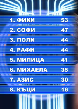 Фики си беше супер днес. Защо да не му е заслужена победата? Бях за Поли, но нея нещо не я харесват зрителите.