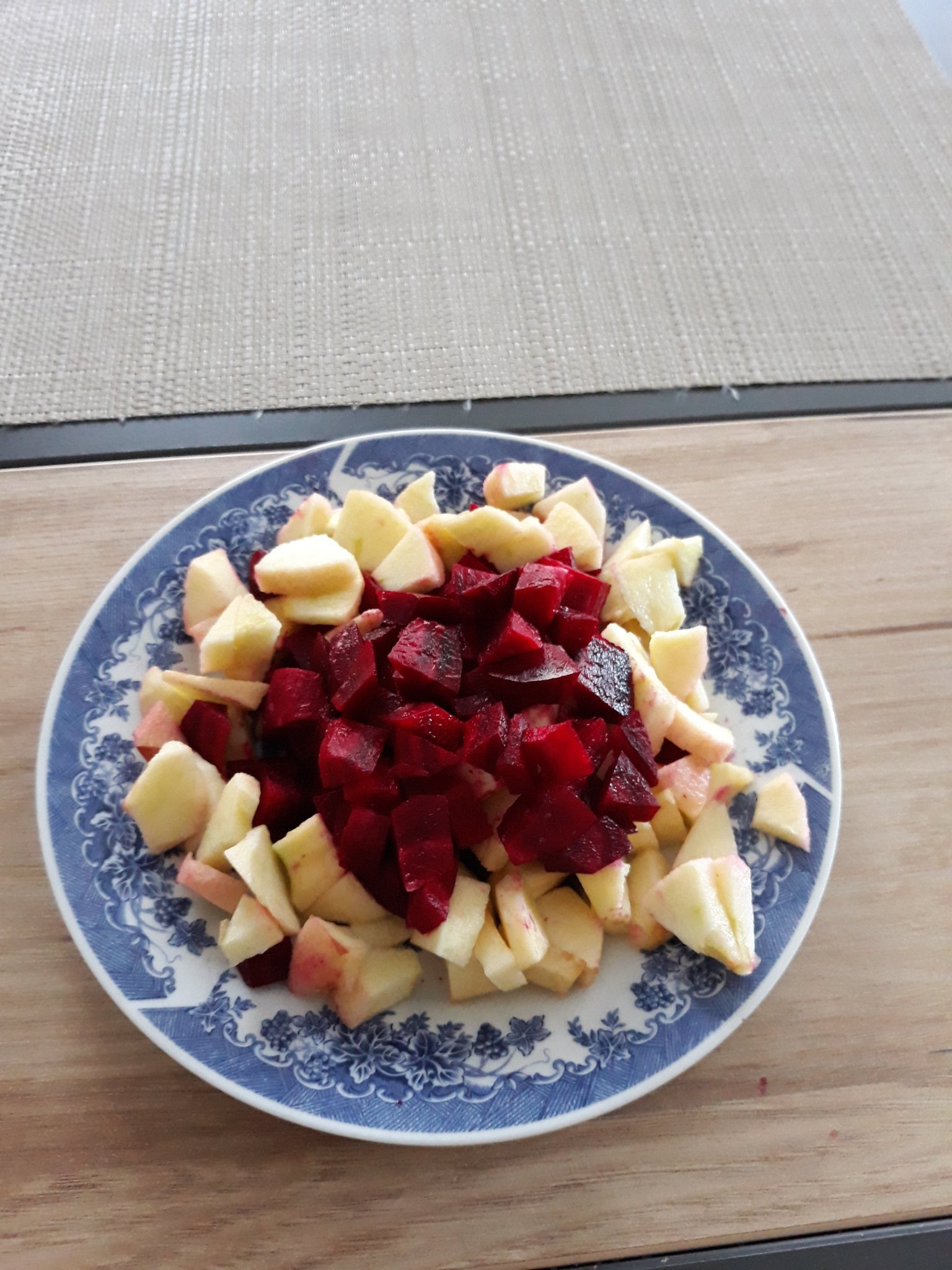 1.Нарязвяме на кубчета 1 голяма тиквичка, добавяме патладжан, морков, чушка и една глава кромид