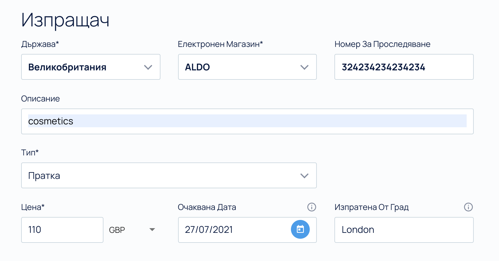 Как се изчислява цената на доставка за пратки с обувки от превозвачи от Обединеното кралство до България?