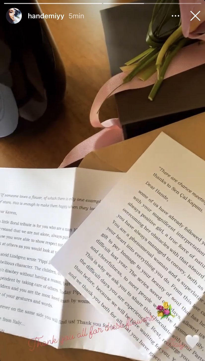 Пишат че едните цветя и писмо  били за Керем но са в къщата на Ханде