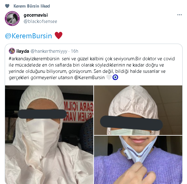 Качвам един отговор на една турска лекарка, който Керем го е лайкнал.