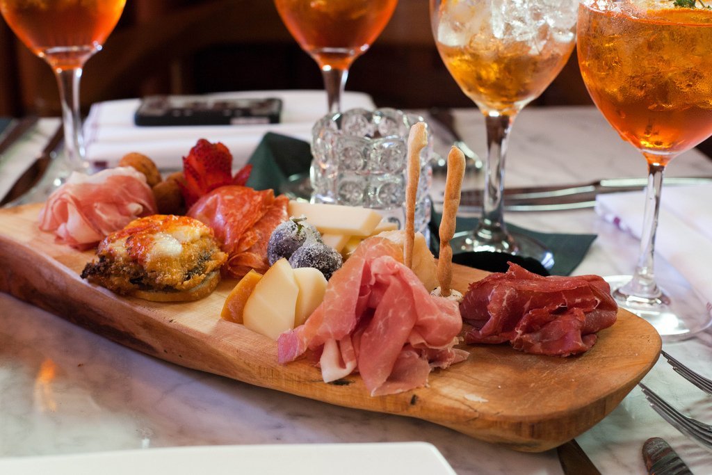 з - кафе, о - пица със спанак, маслини и сушени домати, в - нещо сладко (вероятно мелба)