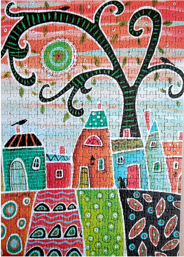 Май всички в неделя сме редили пъзели:satisfied: И аз завърших моите криви къщички. Голямо забавление ми беше, и клоните се държаха прилично и се наредиха бързо.