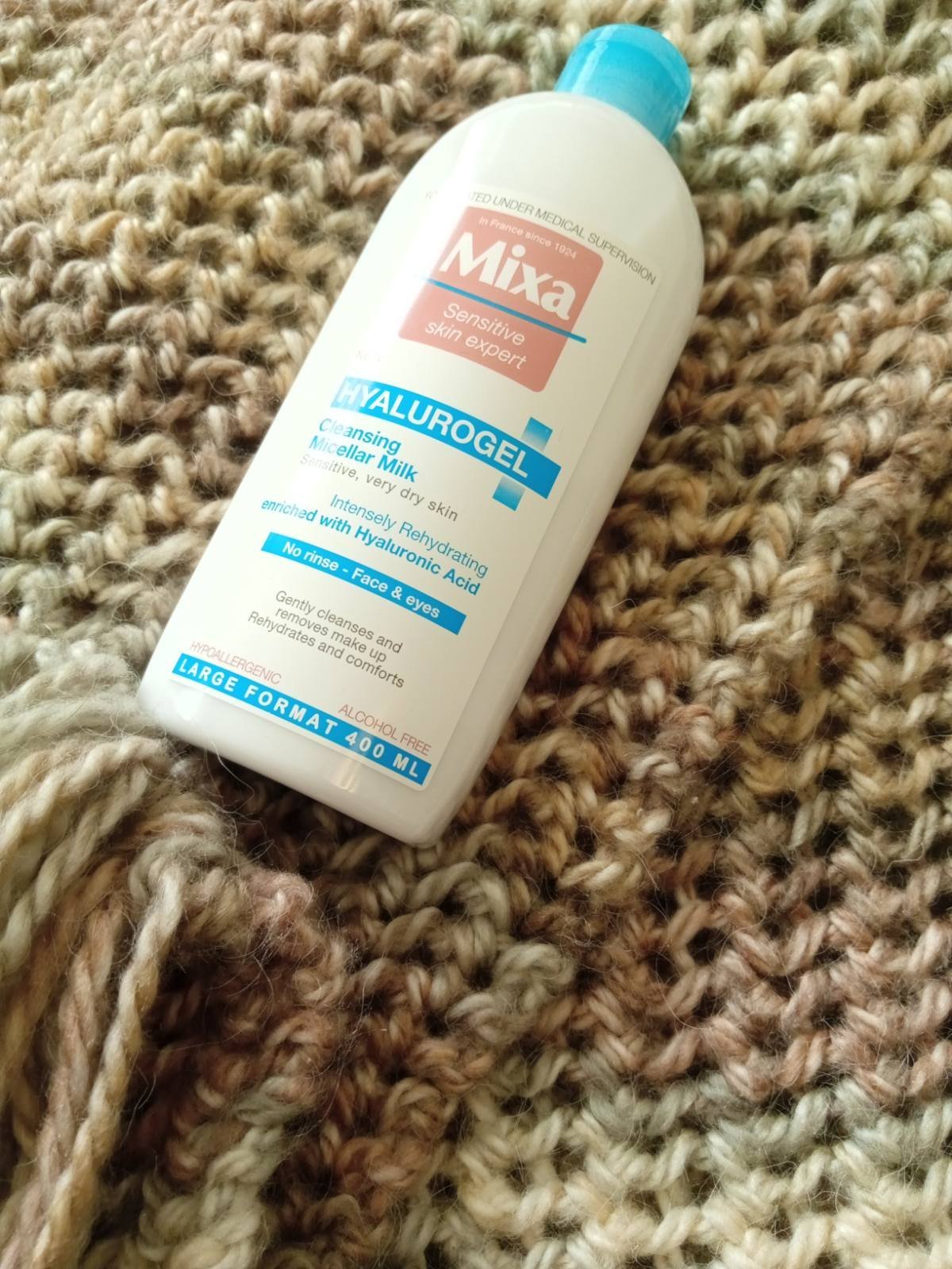 Mixa Hyalurogel мицеларно мляко е последния продукт, който тествах. За него ми е най-трудно да дам оценка и да споделя отзив, защото не ползвам такъв тип продукти и не се гримирам. Като консистенция е леко, тествах го за почистване на спирала няколко пъти. Мисля, че се справя прилично с почистването на очите и не дразни кожата.