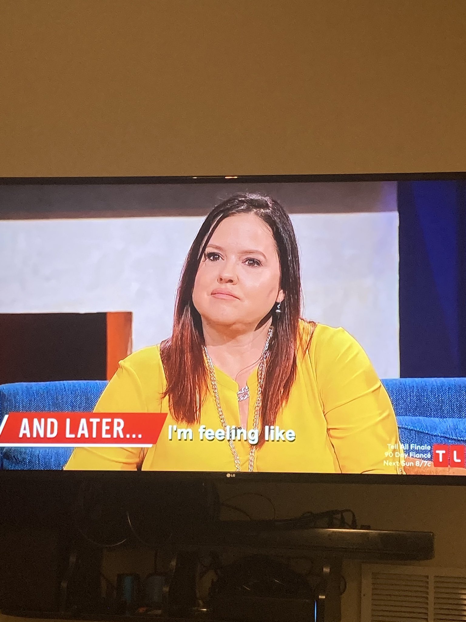 В студиото бяха всички двойки без Стефани, естествено, а Хейзъл и Тарик бяха на видео, защото имали контакт с някой с Ковид. Първо подхванаха Майк и Натали, които както видяхме във видеото дойдоха отделно. Включиха майката на Майк, която каза, че няколко дни преди сеатбата е помолила съседката Тамара да каже нещо, ако свещеника попита "ако някой е против този брак да говори сега или да замълчи.." Натали се ядоса много. Отделно през нощта преди сватбата Натали казва, че Майк е изчезнал някъде и не си е вдигал телефона. Яра и Джоуви - него го закачиха на детектор дали на ергенското парти е правил нешо със стриптизьорката, с която се качиха горе в клуба. Естествено, нищо не излезе освен, че някога си бил спал с една такава, но това е било преди Яра. Много ми хареса как се държа тя. Юлия и Брандън - включиха родителите му и ги разпитваха за правилата в къщата и за противпзачатъчните. 😅 Още живеят с тях, но е очевадно, че нещата там не са добре. Останалите участници обвиняват Брандън, че изобщо е позволил такова съжителство, но той каза, че бил намерил квартира преди Юлия да дойде, а тя не я е харесала. Ребека и Зиед - тя си е инжектирала устните и няколко зони по лицето, за да в по-младолика. Отделно си е направила липосуксция и си е отстранила излишна отпусната кожа в коремната област. На мен ми се видя подпухнала в лицето. Ще кача снимка от ТВ-то по-долу. Зиед каза, че така била по-секси след операцията, а Юлия осъди пластичните операции като цяло.  Натали каза, че и тя имала хиалурон в устните, но не й харесвало, понеже било много. Искала да си оперира носа. Яра каза , че си е оперирала само носа и спореше с Юлия по повод пластичната хирургия и как всеки трябвало да си променя, каквото не му харесвало у него. Питаха Ребека за сцената на ревност в ресторанта с приятелката на дъщеря й - тя каза, че момичето настоятелно е сваляло Зиед над 30 минути, но дъщеря й отрече и каза, че приятелката й само е предлагала помощта си. Попитаха Зиед би ли искал Ребека да е по-млада и той каза да и обясни, че тя била обсебена от моделите и филтрите в Инстаграм и сама е решила да се разкраси. В другата част ще дават Хейзъл и Тарик и Андрю и Адам. Французойката настоява Андрю да не е в студиото, когато я и тервюират и от елипа му казват, че трябва да излезе, а той се ядоса и си тръгва. 😁