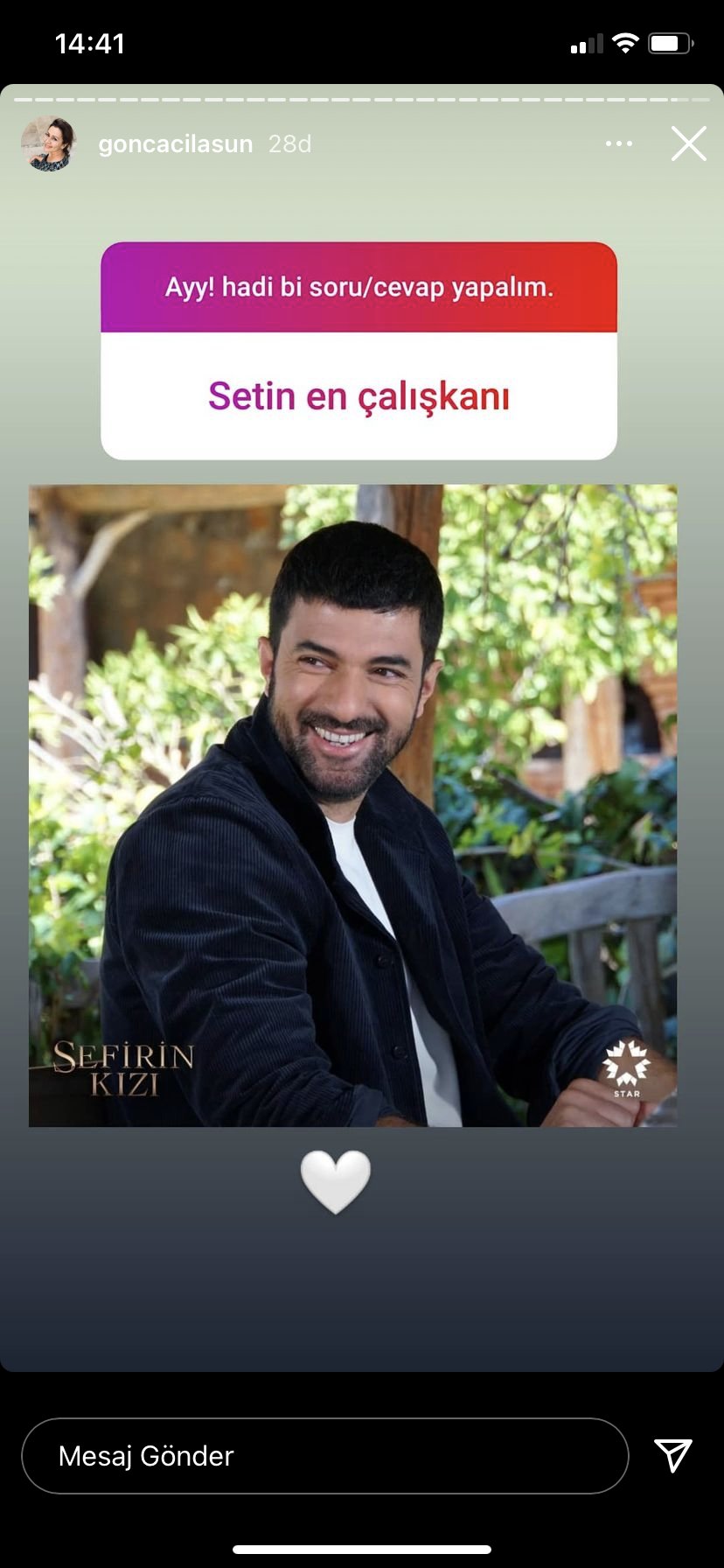 Гонджа/Халисе е пуснала в сторито си тази снимка и е написала: Най-трудолюбивият в комплекта/снимачната площадка.