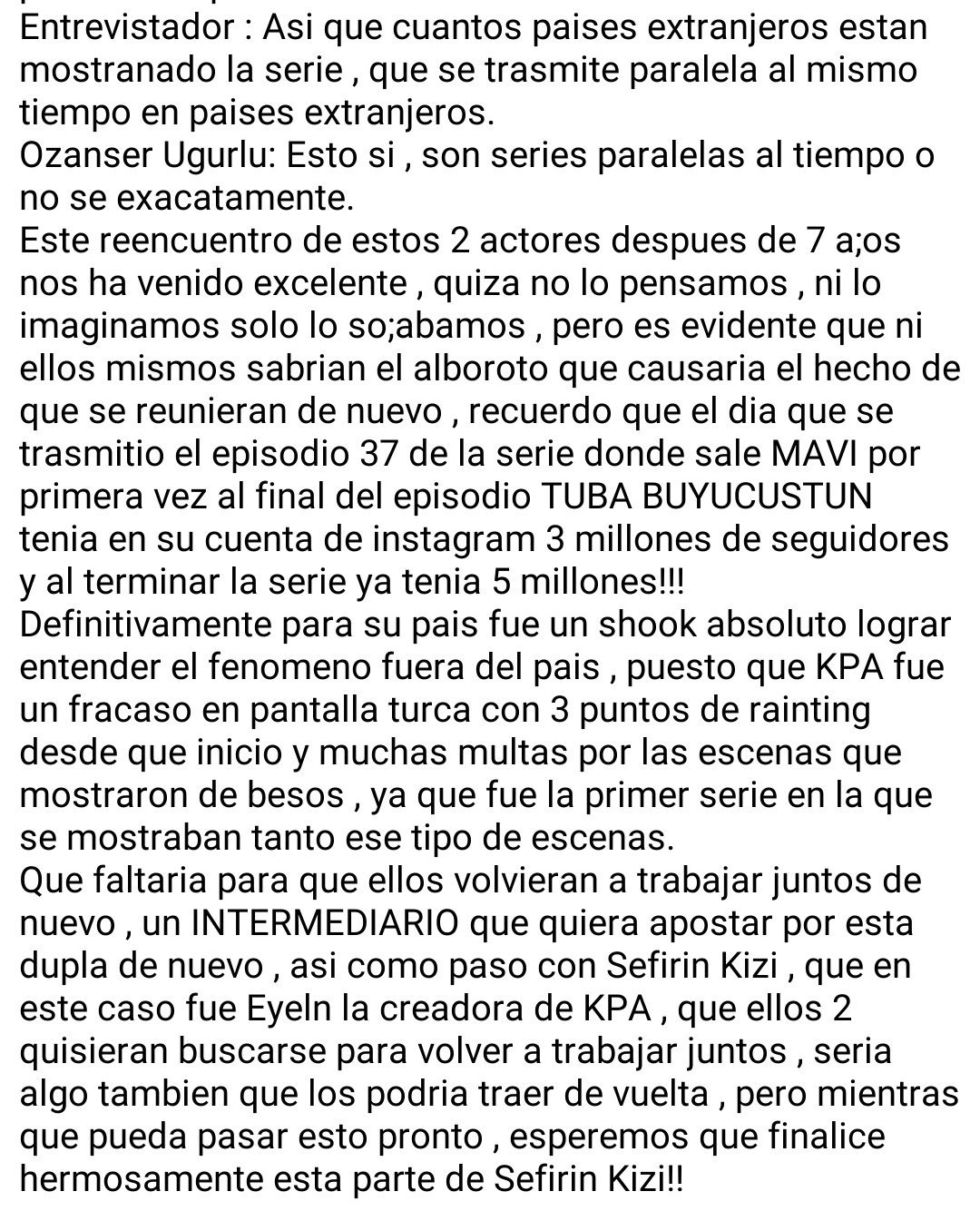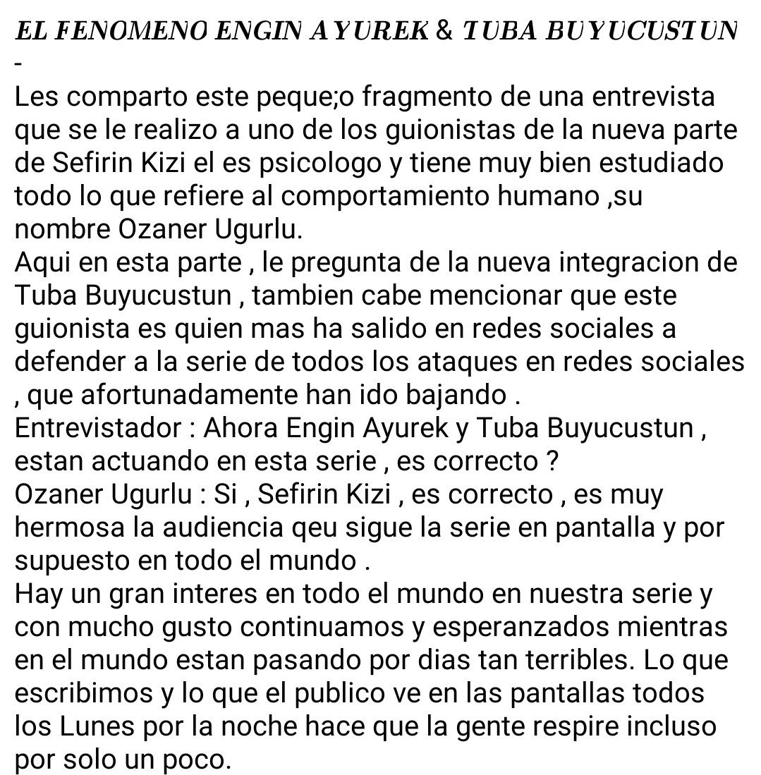 Споделям с вас част от интервю на единият от сценаристите на втората част на „Дъщерята на посланика”. Той е психолог и познава добре всичко,свързано с човешкото поведение. Името му е Озансер Угурлу. Питат го за скорошната интеграция на Туба Бююкюстюн. Трябва да се отбележи също, че този е сценаристът, който най-често се появява в социалните мрежи, в защита на сериалът от всевъзможните фенски атаки, които, за щастие, с времето намаляха.