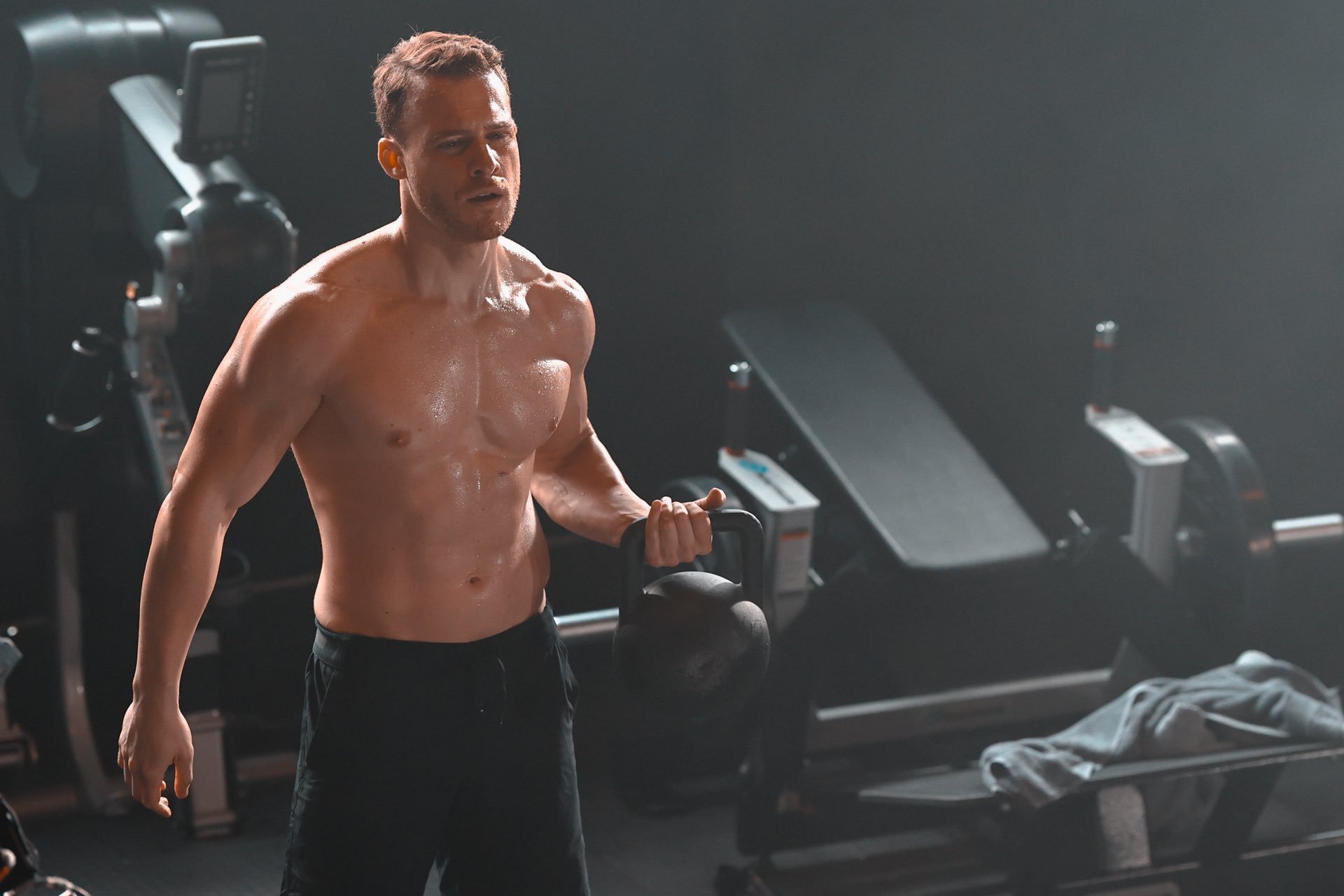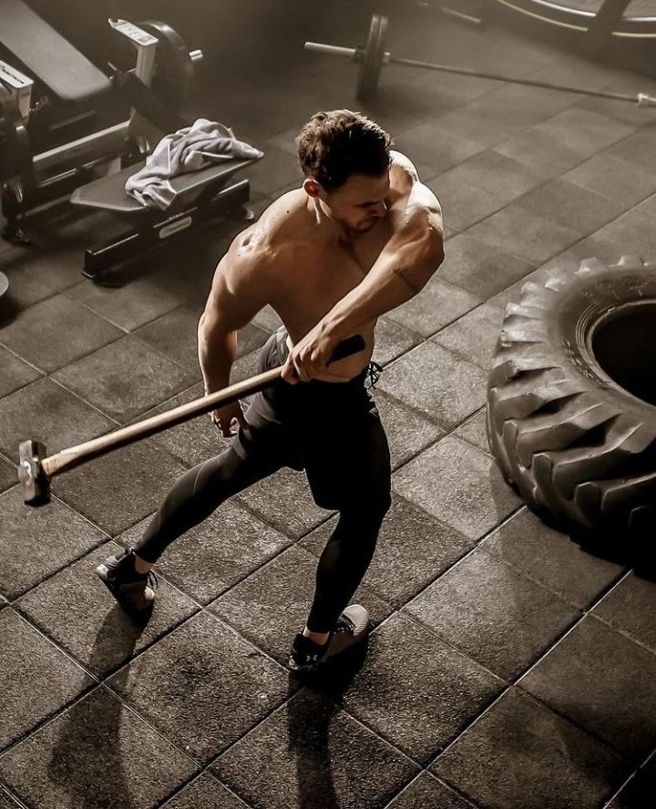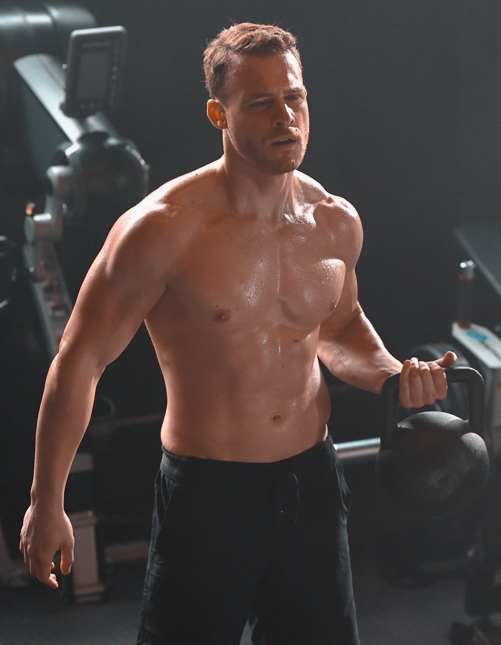 Прекрасно му е тялото, няма спор. Само с каква лекота вдига тези тежести.