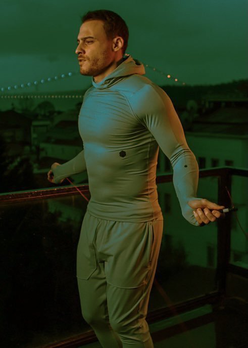 Щом ще се приспиваме с Керем Бурсин, една черно-бяла снимка и от мен! Тя е от същата фотосесия Kerem Bürsin X Under Armour/2020.