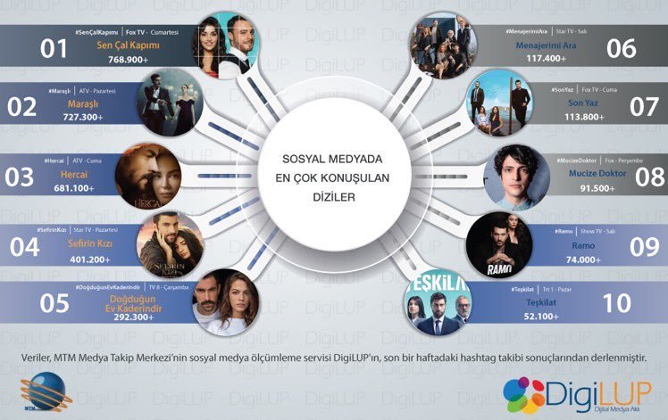 Според данните на Digilup, 10-те най-обсъждани телевизионни сериала в социалните мрежи през последната седмица: