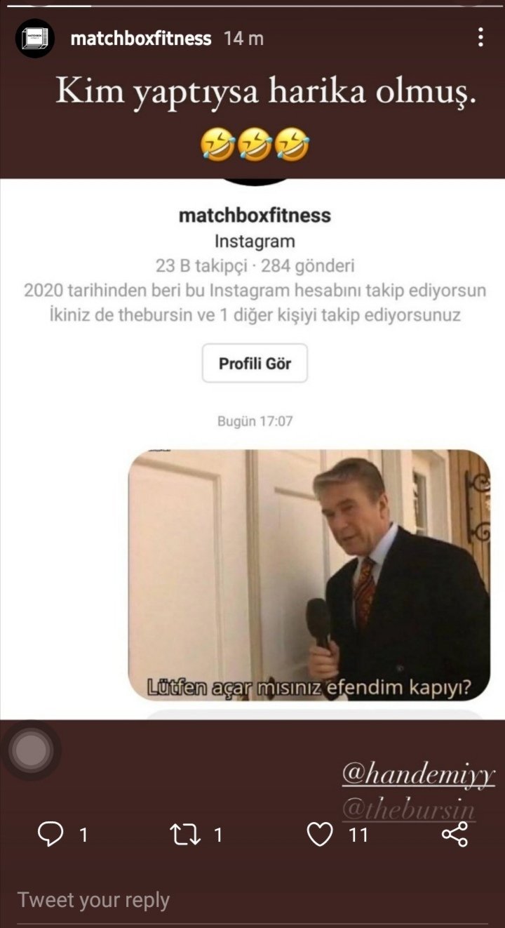 Не мога! Всяко отражение в балон или в стъкло, всяка сянка в пространството е Керем. Всяка шапка или по-широка дреха, която Ханде носи, е на Керем. Забавно е, признавам. Но е и чок смешно! Grinning
