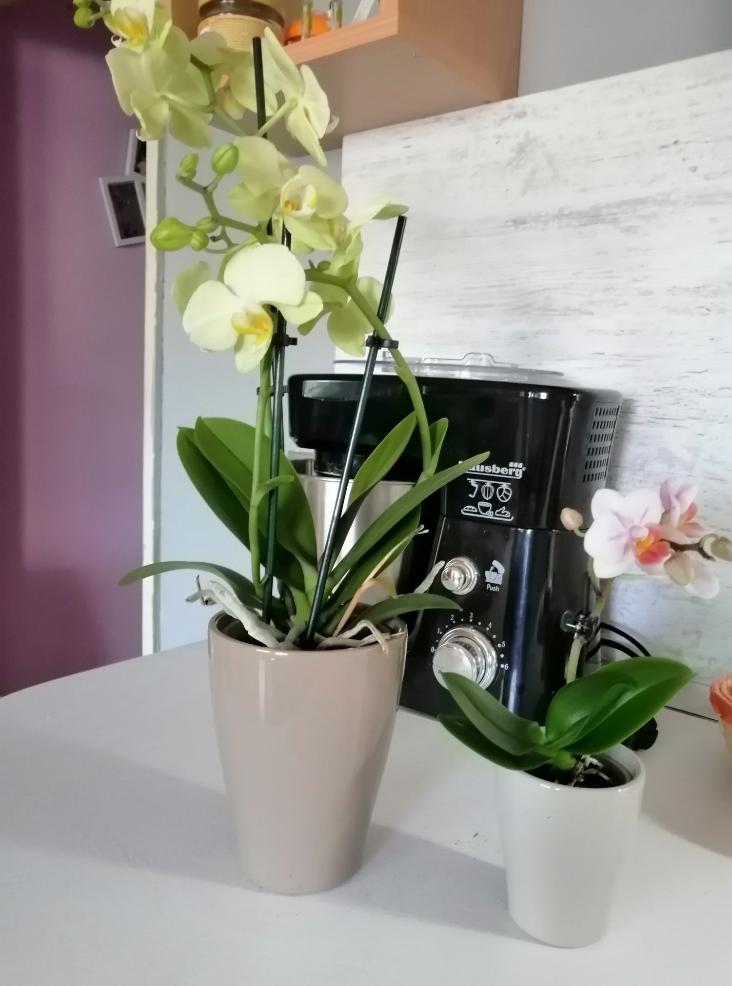 На моите фалчета им сложих допълнително осветление преди около 2-3 седмици и им се отразява добре. 2  от 4те пускат ново листенце. Една още цъфти. И една се съвзема след лечебни процедури. Подарих доста орхита, че ми трябваше място, а и като са много нагъчкани не им е добре. Сега има повече разстояние и въздух между тях.