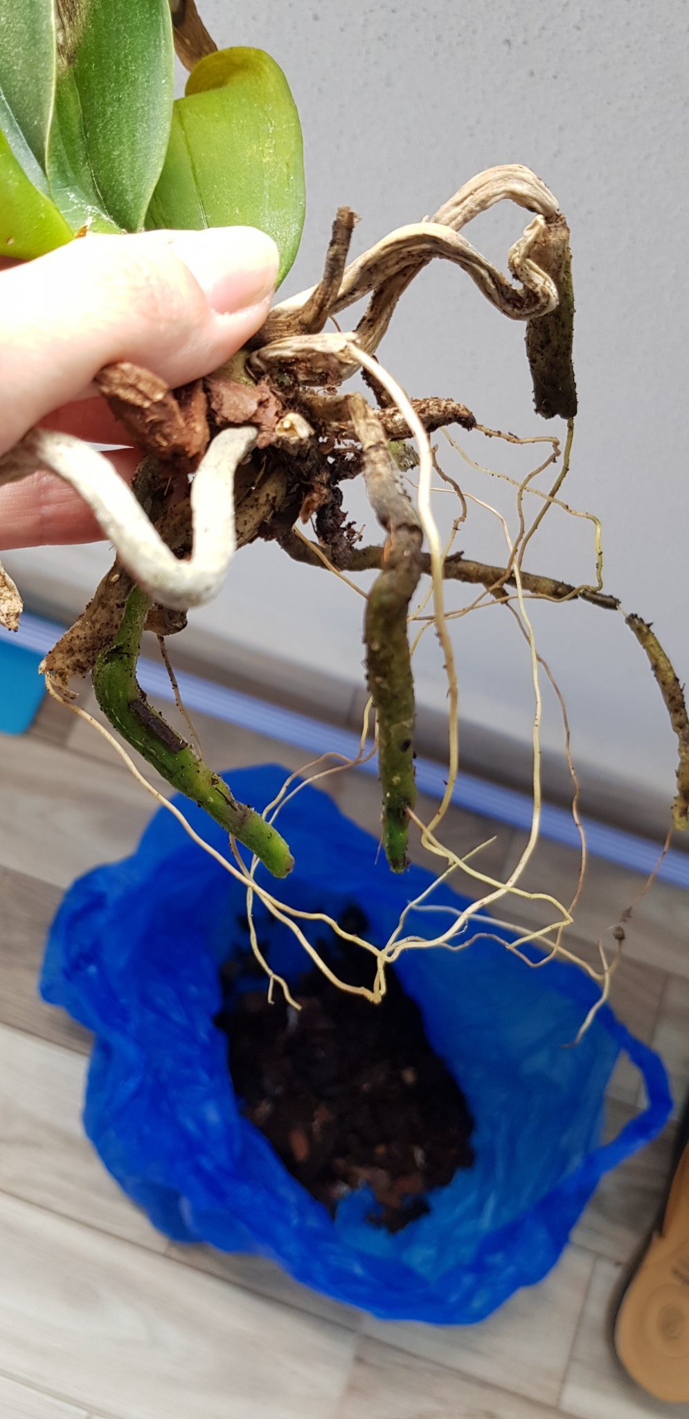 . Днес на по старата видях нов малка Ванда в основата при корените имаше ново растение с по 3-4листа от двете страни. Самото растение е старо преброих поне пет цъфтежа и два може би изсъхнали неуспели да се развият. Така ли се размножава Ванда с издънка отдолу при корените или растението е пред заминаване и си пуска кейка? Не събрах смелост да взема една от двете, другата по млада вече с прецъфтял цветонос. До три дни може още веднъж да ги навестя после ММ се прибира и... вече ще е трудно да я приютя