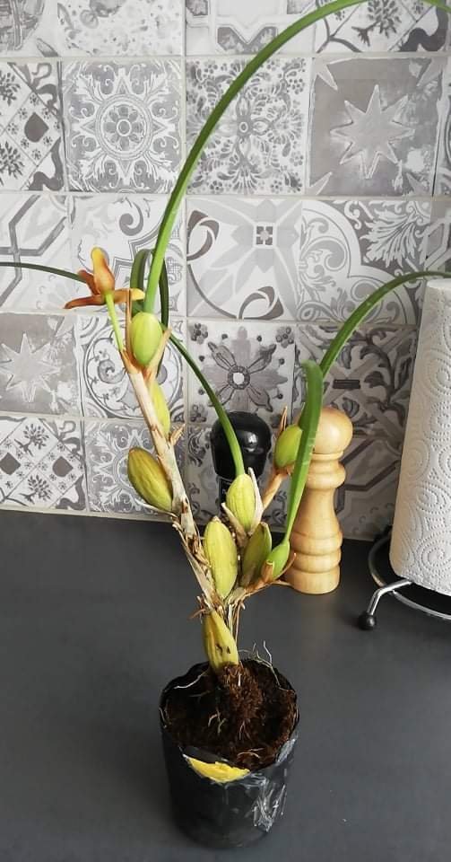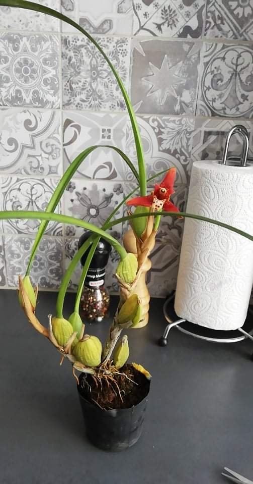 Сдобих се с една екзотика за мен - Maxillaria tenuifolia. Ще бъде предизвикателство, дано да се сбогодим. Четох много и клипчета гледах и да видим как ще е. За сега я оставих навън на терасата, на светло, но не пряко слънце и на завет. Ето я и нея