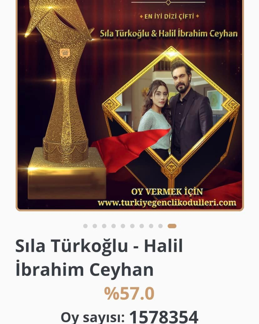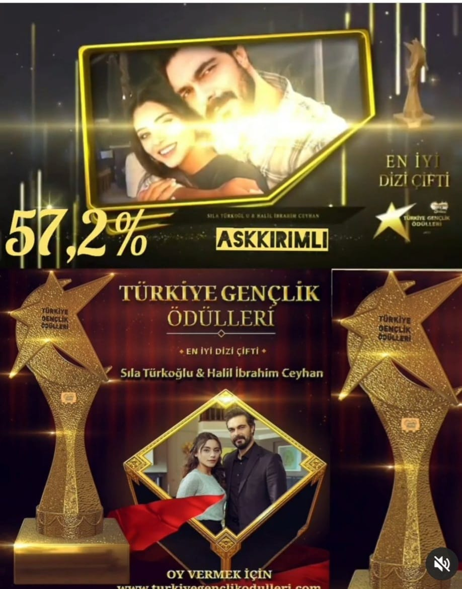 Добрата новина от вчера е,че двойката Съла-Халил/ Сехер-Яман/спечели първо място на младежките турски награди.Една от най-престижните класации в Турция.Гласуването беше от цял свят и най-голям принос имат бразилките.Двойката ни получи 57.2% от гласовете.Само да спомена,че гласуването в началото на април беше подменено и Съла и Халил от първи изведнъж отидоха на второ място с огромна разлика за една нощ гласуване.Бразилките и туркините отправиха жалби до комисията отговаряща за гласуването и беше променен начинът на гласуване с регистрация и всичко започна отначало.И така на 30.04 .приключихме с гласуването-Съла и Халил заслужено са на първо място.Награждаването ще е на 18.05. и за сега двамата ще присъстват на получаването на статуетката.