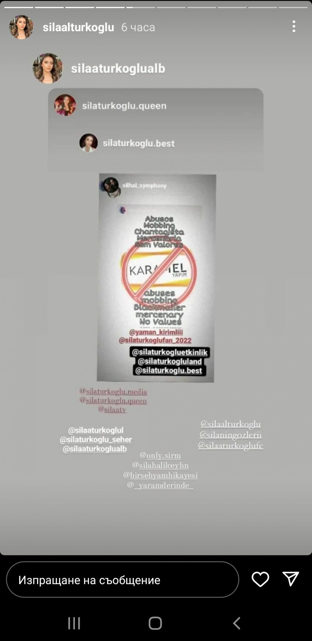 azisiq,започвам да имам усещането,че Назмие е съсипала връзката им.Съла вече не следва Халил в Инстаграм,и Халил вече не следва Съла.На награждаването Халил е получил и двете награди .Присъствали са доста хора но все от Еманет и то ,които подкрепиха писмото на Карамел против Съла.Там е едната от продуцентките на Еманет,до колкото разбрах мениджърката  на Халил е приятелка с Назмие и са притиснали Халил относно Съла.