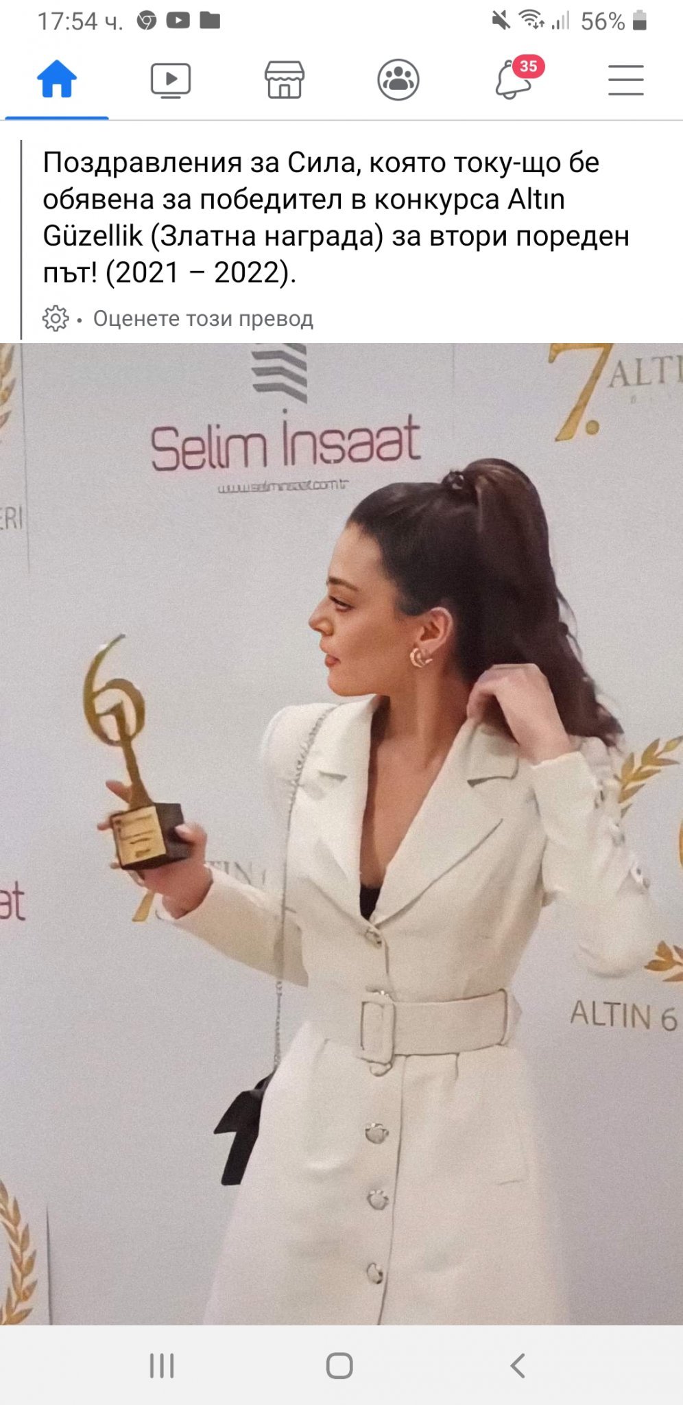 "Тази награда отива и за моята половинка Сила Туркуглу, толкова исках тя да е там, но нея я няма. ""