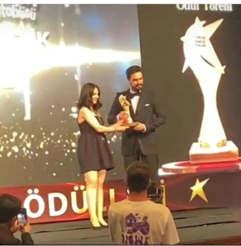 Думите на Халил ,когато получава наградата: Партньорката ми Sila Türko ğlu не е тук, останах напълно разочарован 😏