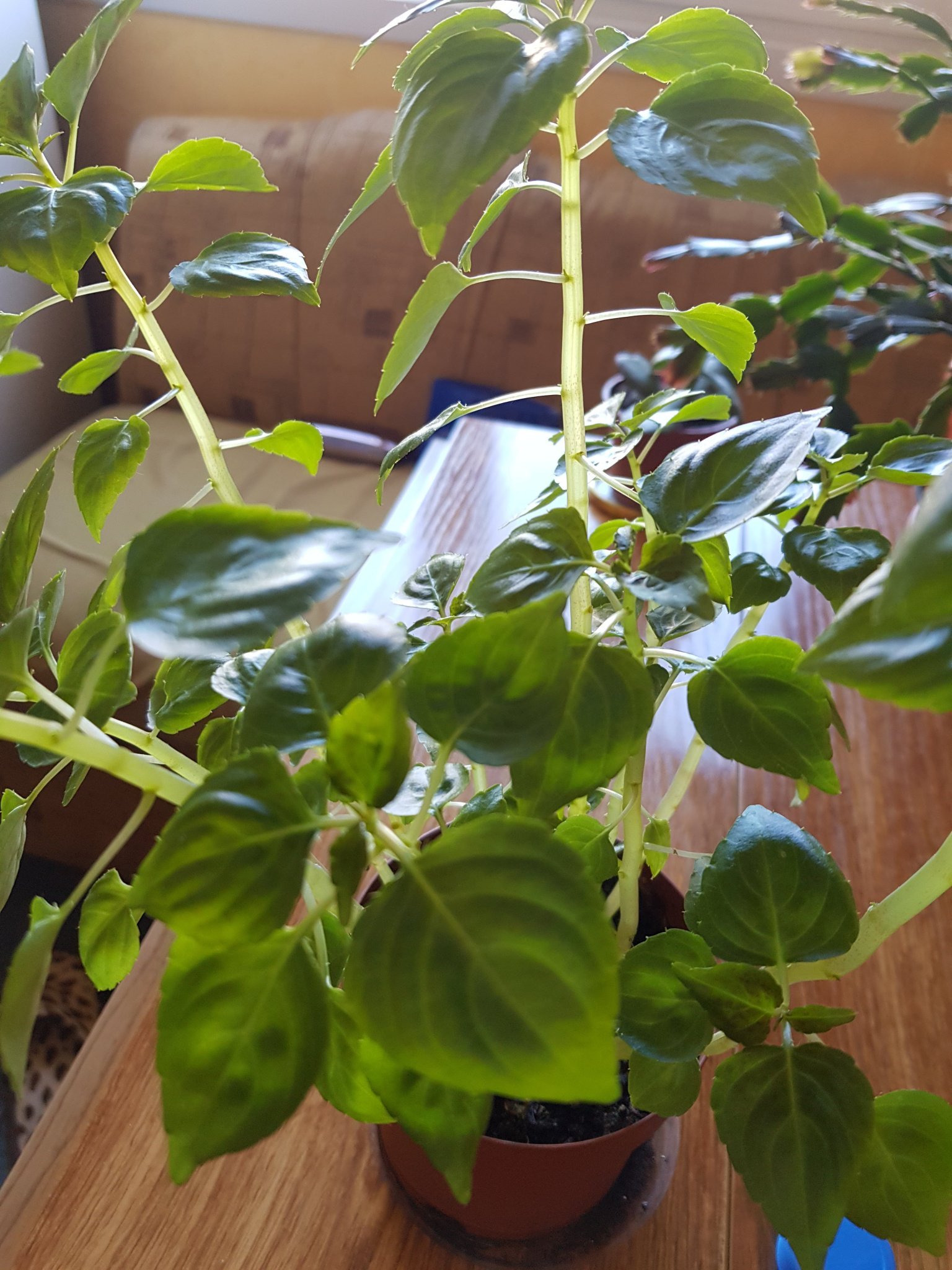 Това е растение, което расте дълго/високо ако не му отчупваш върховете за да се разклони. Цъфти (ако не го бъркам с друго), че сега съм в движение и не е удобно да търся инфо.