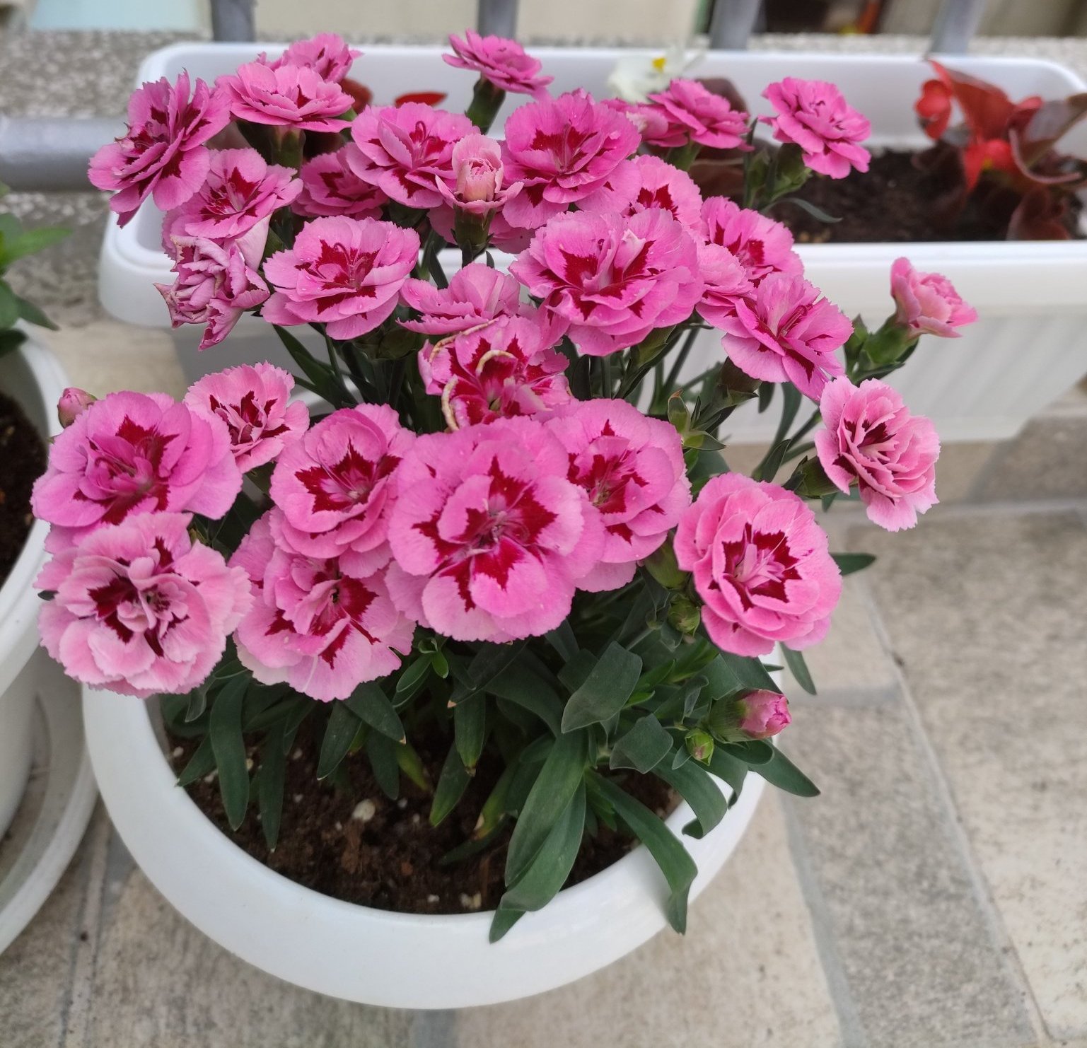 Bubabuba, не се сещам как мирише карамфил, май не са ми попадали хубави ароманти, но на цвят е бонбон! Може да си го размножиш с резници малко по-късно, лятото. Вземаш един пръст дължина от върха, но от стрък който не цъфти, махаш листата в долната част. Крайчето му дето ще пуска коренчета трябва да е под място където започват листенца, може да го оформиш после. Бучва се направо в почва, но трябва да е много рехава, като пресята, не много дълбоко, колкото да се закрепят. Слагаш една найлонова торбичка отгоре като мини-парник и чакаш да тръгнат Hands Plus1